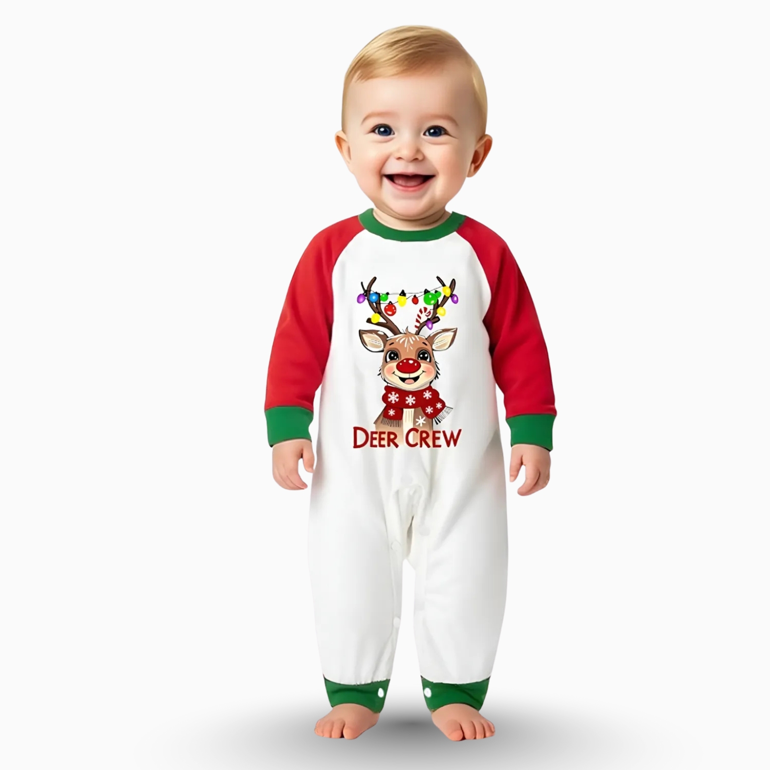 Deer Crew Reindeer Light Printed Plaid Family Matching Christmas Pajama Set